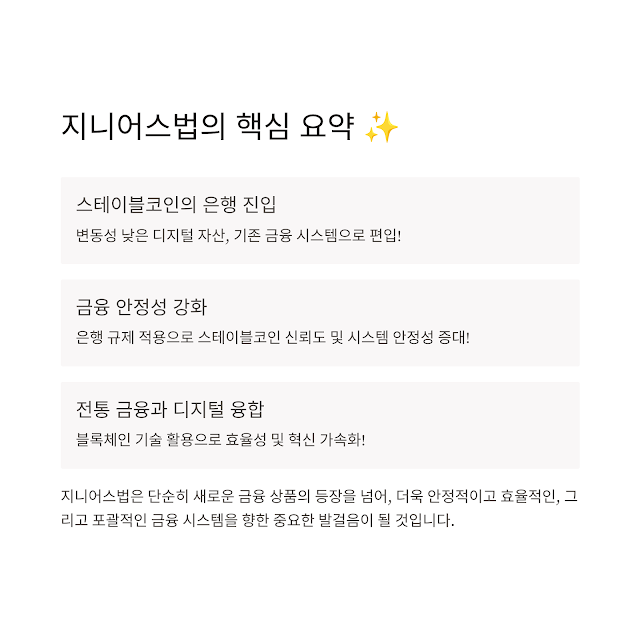 요즘 금융 시장이 정말 뜨겁죠? 특히 디지털 자산, 그중에서도 스테이블코인에 대한 관심이 엄청난데요. 최근 들리는 소식에 따르면 '지니어스법'이라는 게 곧 통과될 것 같다고 해요. 이 법이 통과되면 스테이블코인이 은행으로 진입할 수 있게 되면서, 우리가 알고 있던 금융 시스템이 완전히 바뀔지도 모른다고 하네요! 저도 처음에는 '이게 무슨 소리지?' 싶었는데, 자세히 알아보니 정말 흥미진진한 변화들이 기다리고 있더라고요. 😊